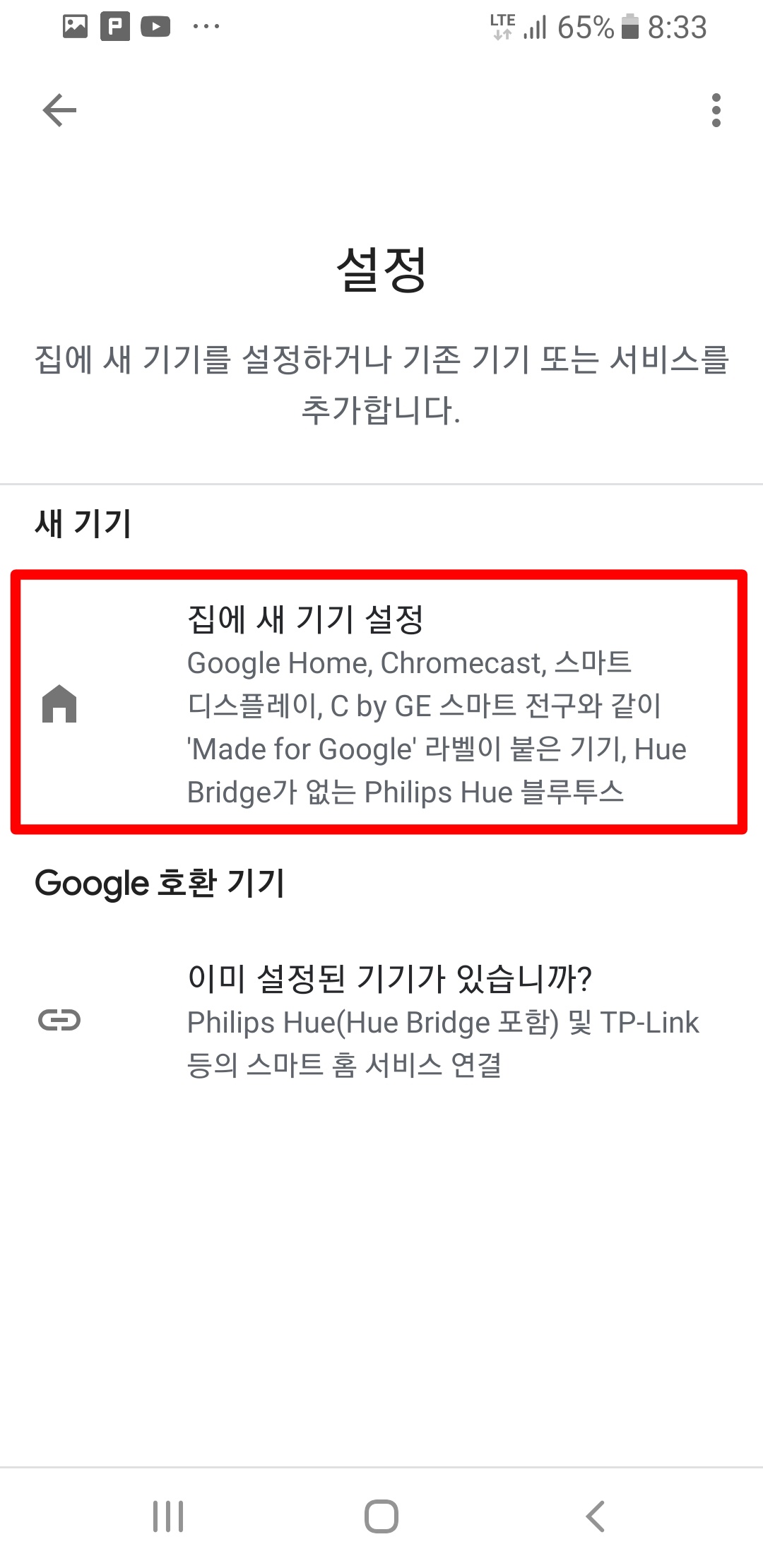 4. 집 만들기>새 기기 설정>와이파이 연결시 5G 말고 2.4Ghz로 연결