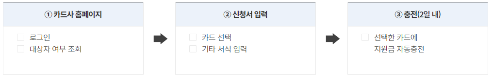 - 충전금은 신청일로부터 약 2일 후 해당 카드에 지급됩니다.