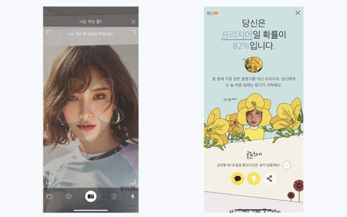다음 앱이 설치되어있지 않은 상태에서 찍었던 꽃사진도 앱에서 불러오기를 통해 나중에라도 꽃이름을 찾을 수 있습니다. 뿐만 아니라 사람의 얼굴도 인식해서 어울리는 꽃을 찾아주는 재미있는 기능도 있습니다. 이렇게 나온 결과는 카카오톡, 카카오스토리 SNS를 통해 주변 지인이나 친구들에게 공유할 수도 있구요.