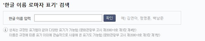 지금은 검색 사이트에서 영문이름 변환이라고 검색하시면 바로 결과 상단에서 한글 이름 입력만으로 간단하게 영문이름 변환을 해주는 기능을 제공하고 있습니다.