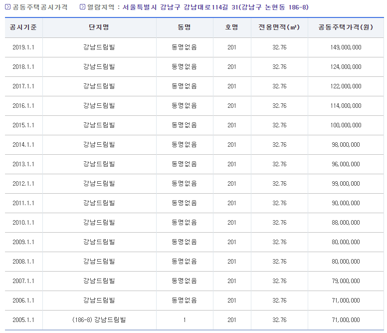 한 주소지를 예로 들어 공시지가 조회를 해보았습니다. 이처럼 국토해양부 공시지가 조회를 통해서 주택가격 조회를 아주 쉽게 해볼 수가 있습니다.