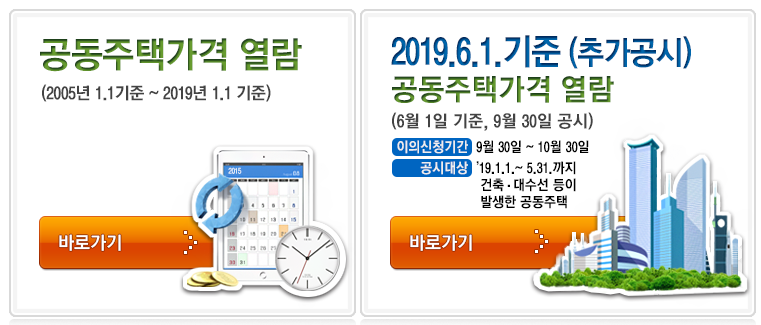 이중 공동주택 가격 열람 바로가기를 클릭하여 공시가격 조회를 해보겠습니다. 공동주택가격 열람 가능한 국토해양부 공시지가 조회 범위는 2005년 1월1일부터 2019년 1월1일 기준입니다.