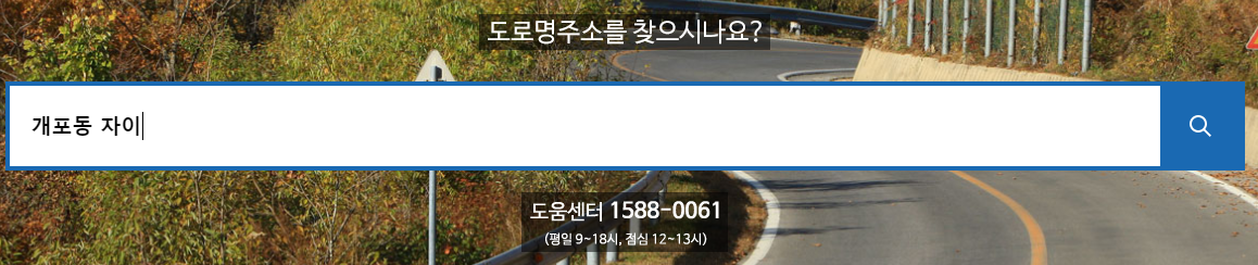 홈페이지 화면이 매우 간단합니다. 가운데 빈 칸에 마찬가지로 검색할 한글 주소 혹은 아파트 이름을 넣고 검색해줍니다.
