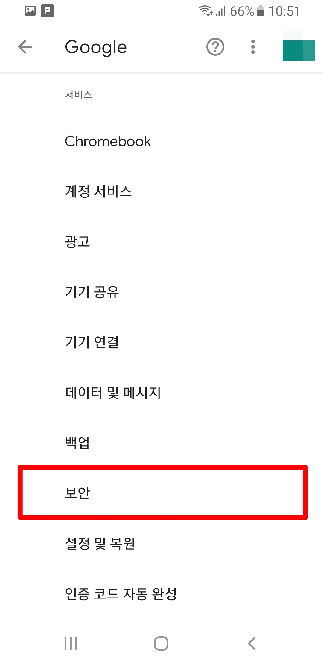 설정 - Google(구글) - 보안으로 차례대로 들어갑니다.