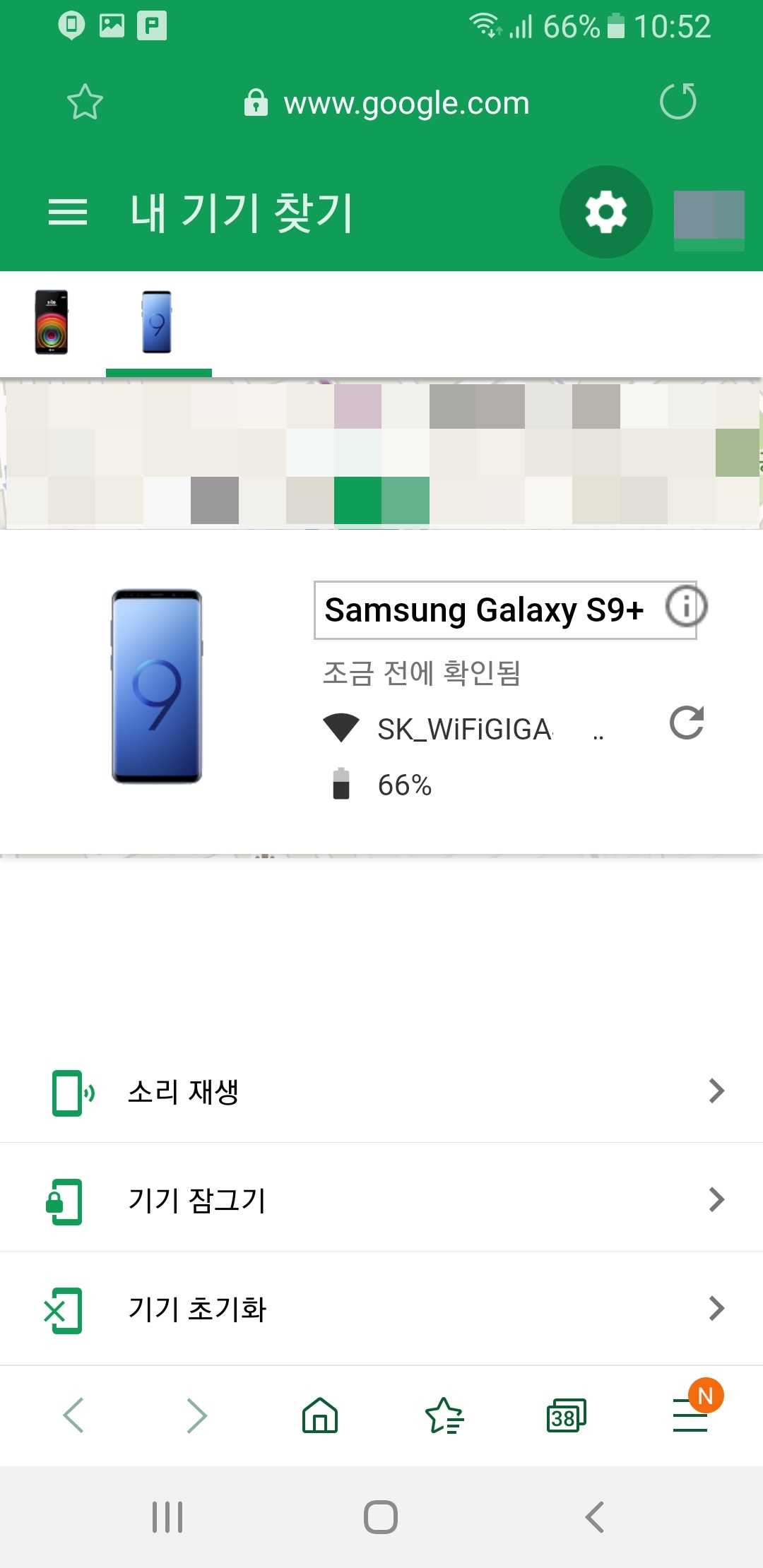 이렇게 기기 찾기 설정이 되어있어야만 실시간으로 핸드폰 위치추적이 가능합니다. 위치 찾기 외에도 원격으로 소리 재생, 기기 잠그기, 기기 초기화 등을 실행할 수 있습니다.