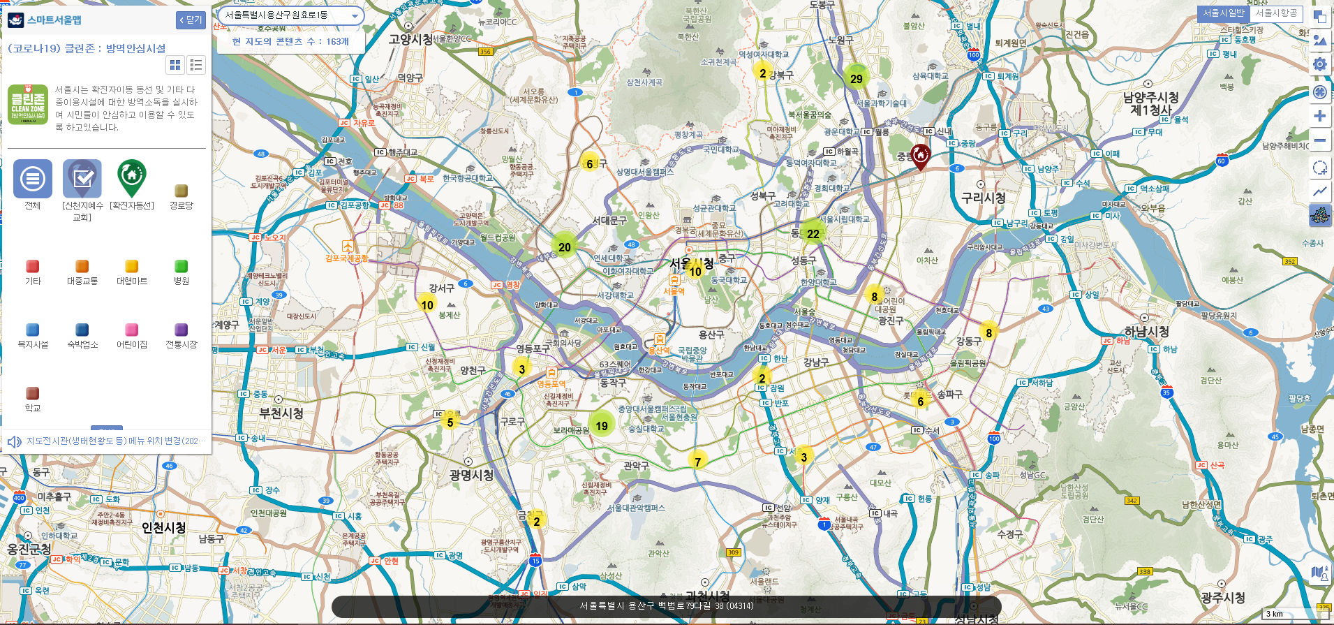 해당 페이지에서 코로나 19와 관련하여 확진자 이동경로, 선별진료소 현황 및 연락처, 그리고 신천지교회 위치와 주소를 확인하실 수 있습니다.